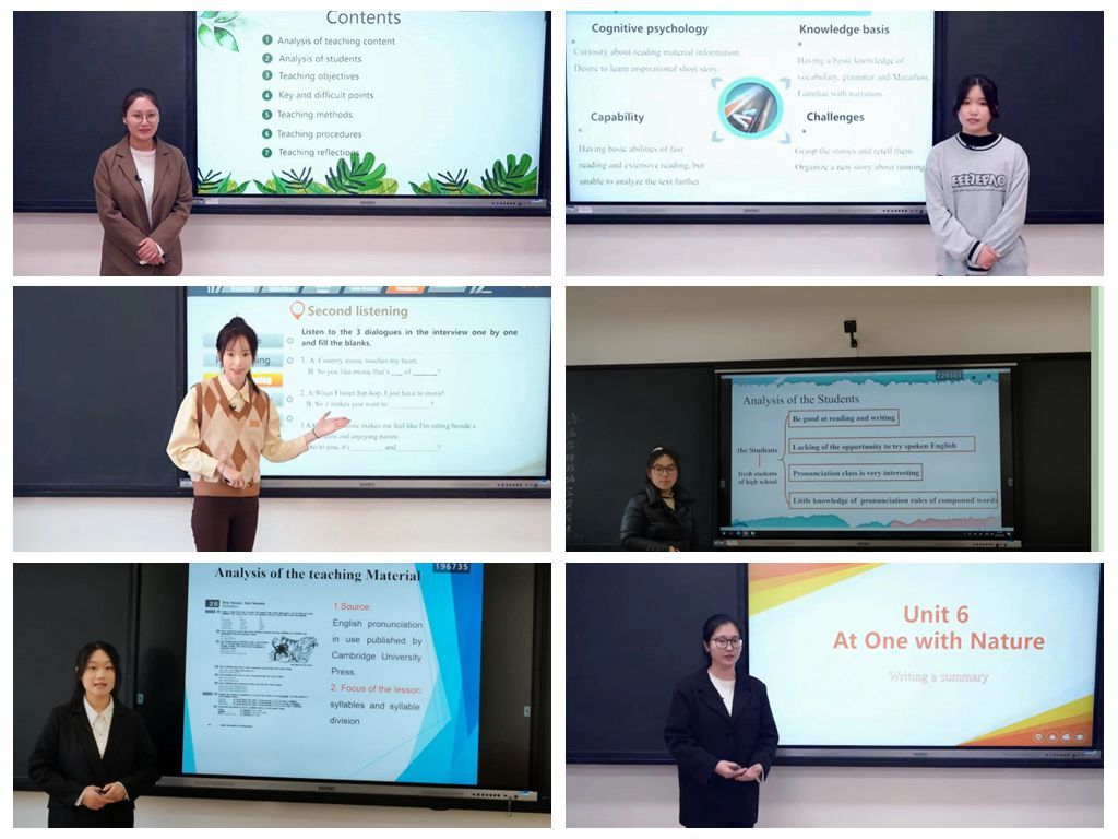 此次的优异成绩离不开各位指导教师的倾力相助和鼓励、陪伴。英文学院英语教师教育工作坊的朱广珍、李冬花、党郁楠、李静(25082)、冯军英老师以及高职英语专业的马青、闫福祥、杨玥老师分别为指导学生付出了巨大努力, 全程陪伴学生进行教学材料分析、拟定教学思路、PPT课件美化、演练并修改说课内容,最终完成视频录制。竞赛压力之下,指导老师给与学生温暖的陪伴、精神鼓舞,让学生在奋斗的路上不觉孤单,也就更有了冲劲儿。