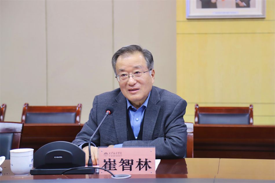 来宾观看西安翻译学院宣传片后,崔智林致欢迎辞。他代表学校对威龙德博士一行的到来表示热烈欢迎,并从学校的办学历程、学科专业建设、办学特色和优势、校企合作情况、社会服务、人才培养成果及学校未来发展目标等方面进行了详细介绍。