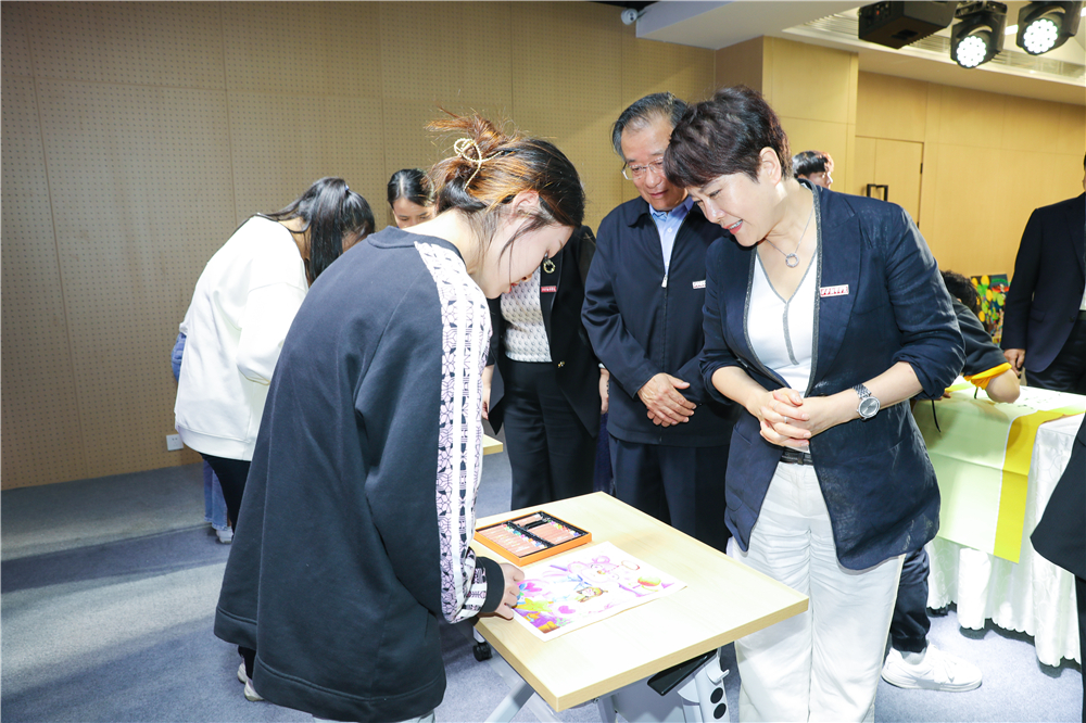 理事长丁晶、校长崔智林欣赏学生幼教技能展示