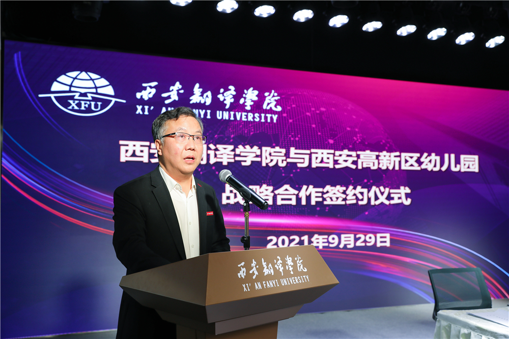 副校长齐玉水代表西译与西安高新区第二十幼儿园签约