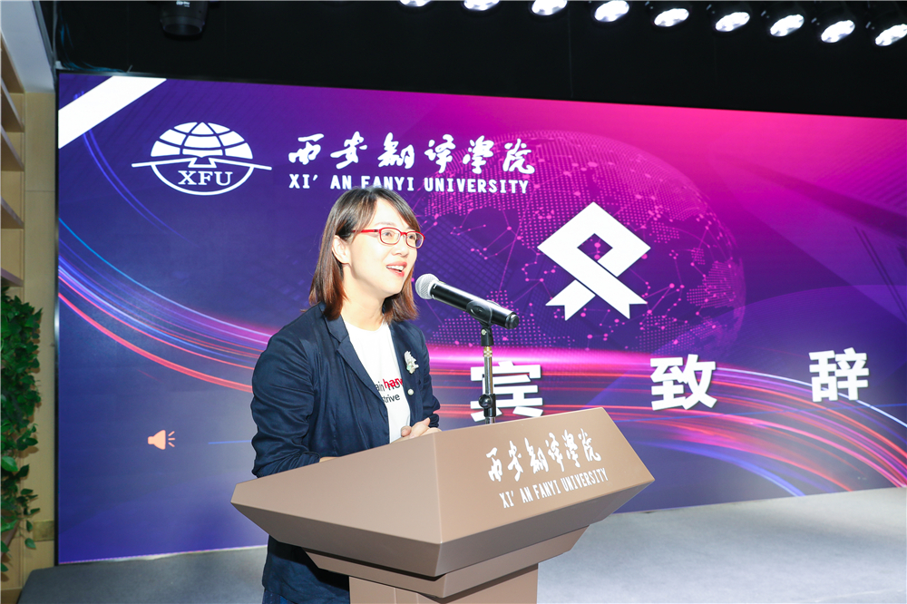 潘睿代表本次参加签约的7所幼儿园发表讲话。她首先感谢西译的热情接待以及对于本次签约的高度重视。她说,西译作为陕西民办高校的领头羊,确实将办学宗旨落到了实处,相信西译能够培养出务实、卓越的人才。潘睿表示,与理事长丁晶短暂交流后,对于双方的深度合作更加充满期待。她希望双方基于前期课程改革、毕业论文交流等合作基础上,后期在人才培养、教改项目等方面,探索更多的合作空间,为学生搭建更好的实习实践平台。
