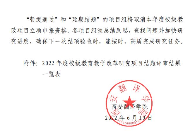 关于公布2022年度校级教育教学改革研究项目 结题验收评审结果的通知