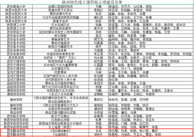 近日,陕西省教育厅公示陕西省级特色线上课程项目名单。我校《在终南读唐诗》《红色陕西》2门课程获陕西特色线上课程立项。
