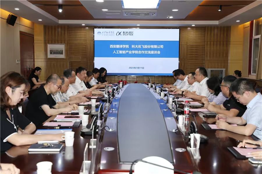 7月11日,西安翻译学院与科大讯飞股份有限公司人工智能产业学院举行合作签约仪式。科大讯飞股份有限公司副总裁孙亮、高教人才培养业务线总经理马季、丝路总部总经理彭梦明,西安翻译学院校长崔智林,信息工程学院院长葛海波副院长王艳丽、尤国强,及其他有关职能部门负责人参加会议。会议由副校长王霖主持。