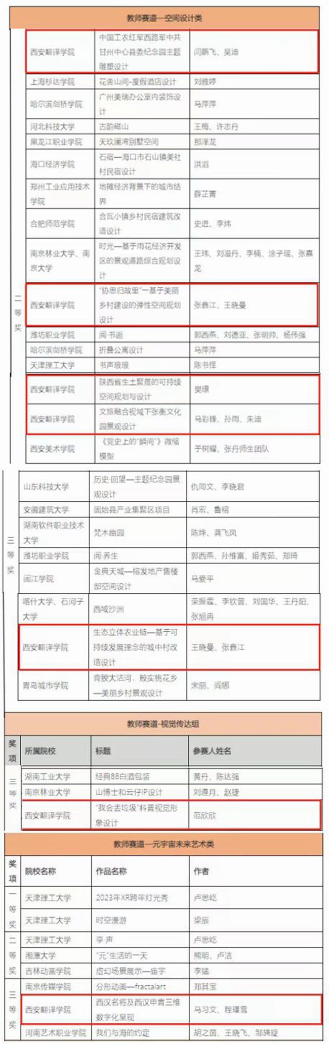 近日,第17届中国好创意(国赛教师组)大赛获奖名单公布。我校艺术与设计学院的闫鹏飞、吴迪、张鑫江、王晓曼、樊璟、范欣欣、马彩峰、孙雨、朱迪、马习文、程瑾雪等11位老师,分别在空间设计类、视觉传达类、元宇宙未来艺术类赛道获得二等奖3项、三等奖3项的优异成绩。